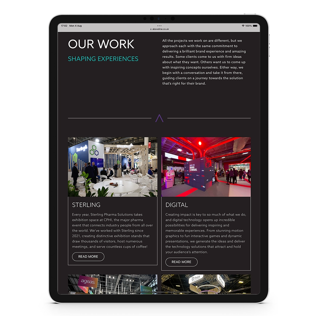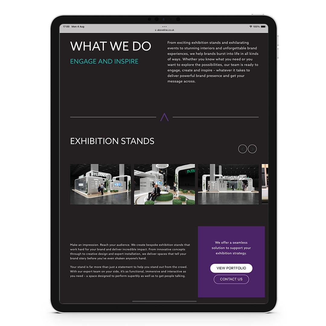 Aboveline approached us again to redevelop their online presents with a new website. They wanted to reposition themselves as more than an exhibition stand producer and showcase they create total brand experiences.