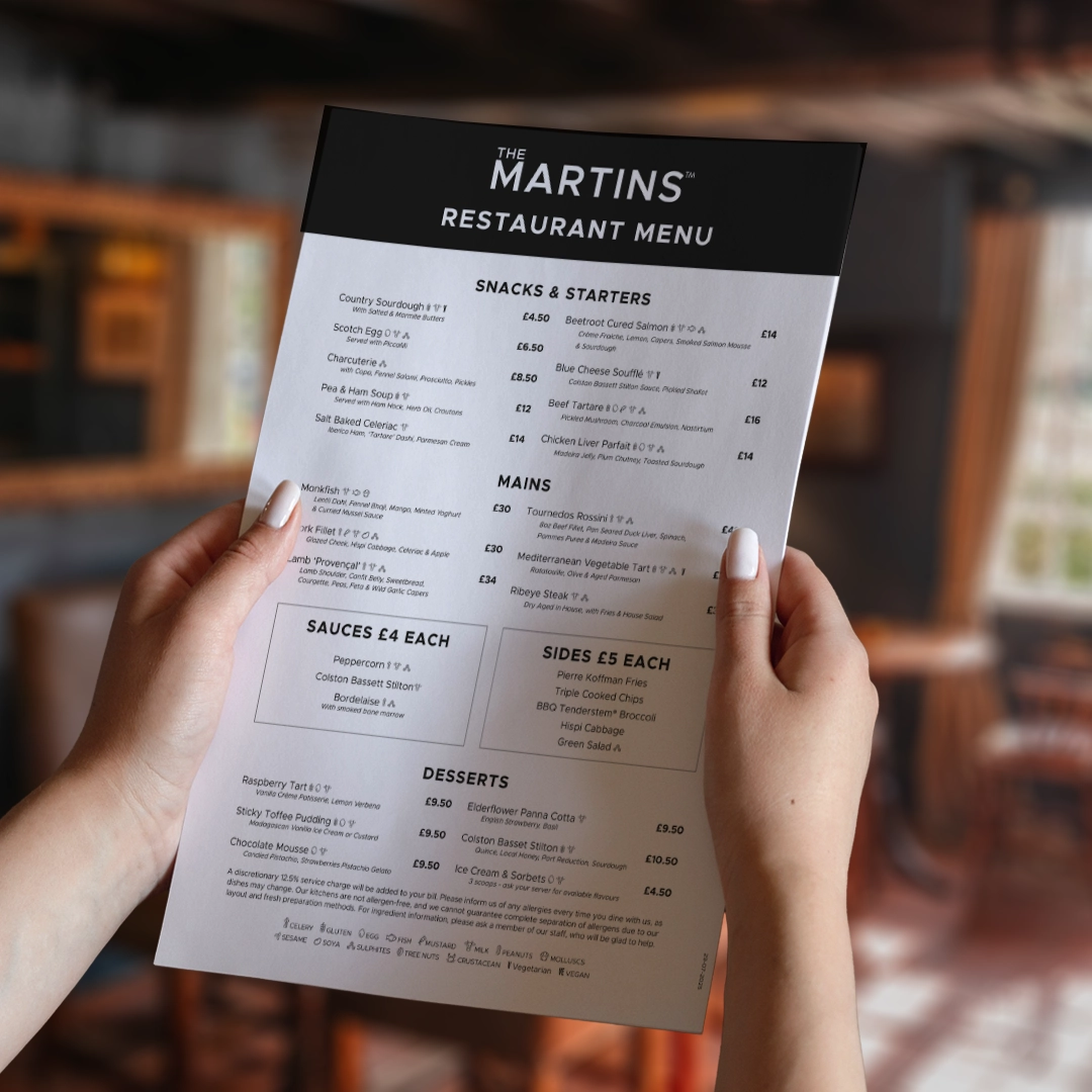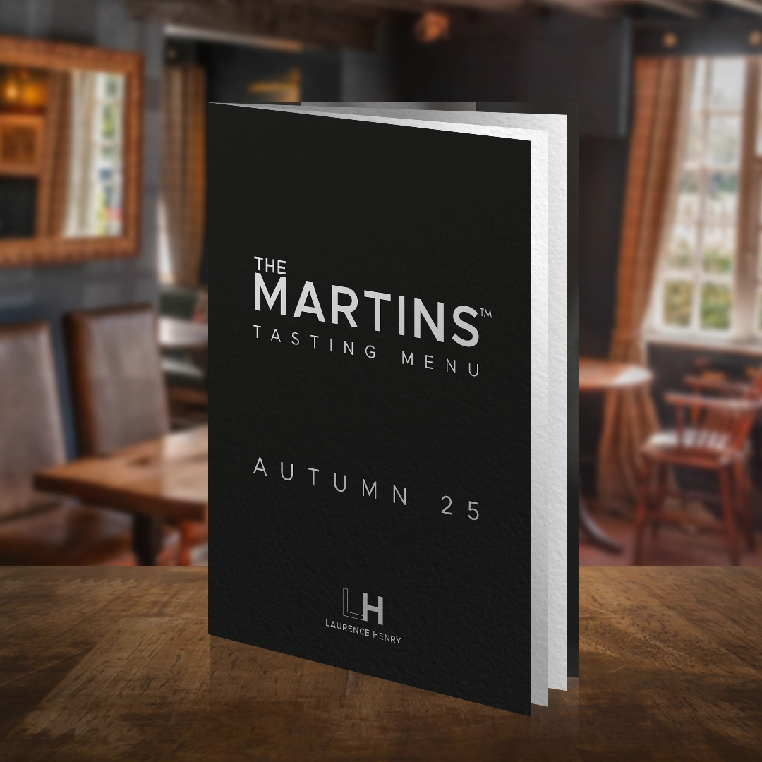Darke Creative had been brought in by The Martins Arms in the idyllic Vale of Belvoir village of Colston Bassett for a rebrand, to position it as a destination venue. The owner and head chef, Laurence Henry, MasterChef: The Professionals winner 2018 took on The Martins Arms in 2024 and over the last year has been renovating the classic country pub with plans to expand.